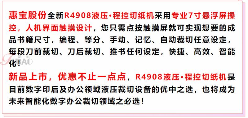 您當(dāng)前的位置:網(wǎng)站首頁(yè) >> 產(chǎn)品展示 >> 彩霸切紙機(jī)系列 >> 微電腦觸控液壓切紙機(jī)系列 >> R4908 V8液壓程控切紙機(jī)